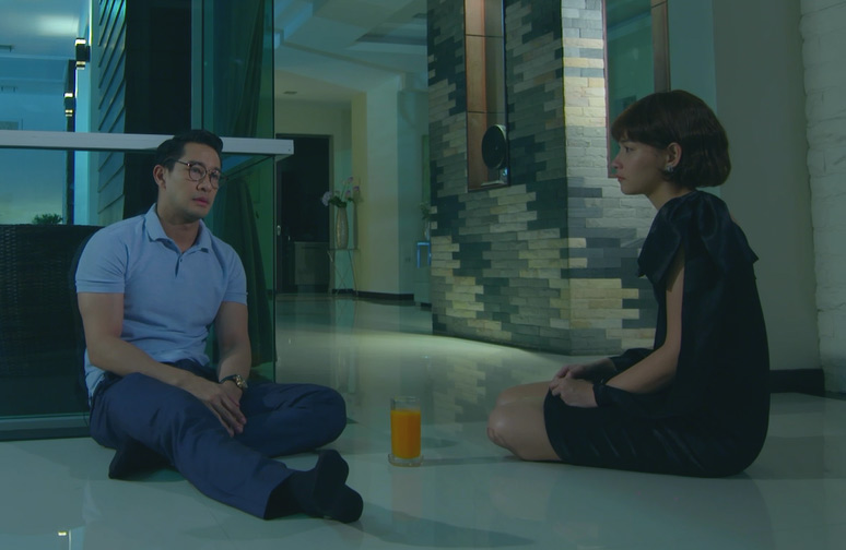 เล่นเอาบีถึงกับอึ้งทำอะไรไม่ถูก!!  ก่อนจะค่อยๆ เอื้อมมือมาจับไหล่ป้องไว้เป็นการปลอบใจ  จากนั้นบีก็เอาน้ำส้มมาให้ป้อง   ป้องนั่งนิ่งอยู่พักหนึ่ง  จึงเอ่ยปากขอโทษบี พร้อมพร่ำพรรณาขอร้องให้บีให้โอกาส  และรอตนอีกหน่อย  ตนจะรีบไปเคลียร์ปัญหา   และกลับมาเริ่มต้นชีวิตใหม่ด้วยกัน   บีฟังแล้วก็รู้สึกได้ว่าป้องรู้สึกผิดและอยากกลับมาใช้ชีวิตกับตนเหมือนเดิมจริงๆ    แต่ภาพความเจ็บช้ำเก่าๆ  ก็ยังไม่เลือนลางไปจากใจ