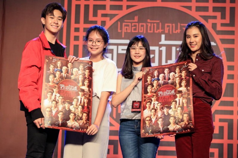 จากนั้นคุณแม่นิภา (อุ๋ม-อาภาศิริ จันทรัศมี) ควงลูกชาย ไอซ์-พาริส อินทรโกมาลย์สุต มาเรียกเสียงกรี๊ดได้ทั้งฮอลล์ ตามมาด้วยคุณตำรวจ เชา-ชวลิต ชิตตนันท์ ที่นำพา เวกัส (เจมส์-ธีรดนย์ ศุภพันธุ์ภิญโญ), มาเก๊า (ริว-วชิรวิชญ์ อรัญธนวงศ์) ร่วมด้วย คิม ต้าเหนิง-กัญญาวีร์ สองเมือง เเละ เหม่เหม นาน่า-ศวรรยา ไพศาลพยัคฆ์ มาล้อมวงบอกเล่าความประทับใจในการทำงาน เเละเบื้องหลังในซีนอารมณ์ที่ยังไม่เคยเปิดเผยที่ไหนมาก่อน