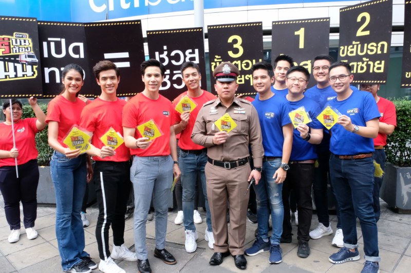 โดยมีเหล่าดารา-นักแสดง และผู้ประกาศข่าว อาทิ เจษ-เจษฎ์พิพัฒ, ฟิล์ม-ธนภัทร, กั้ง-กรณ์, แนท-อนิพรณ์, จั๊ด-ธีมะ, คิง-พีระวัฒน์, แคน-อติรุจ, เอก-เอกพร และ กาย-พงศ์เกษม มาร่วมเดินรณรงณ์ประชาสัมพันธ์ พร้อมแจกจุ๊บติดกระจกฮีโรให้กับผู้ใช้รถใช้ถนน ณ บริเวณสี่แยกอโศก-สุขุมวิท เมื่อวันที่ 3 สิงหาคมที่ผ่านมา