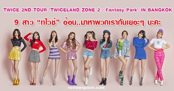 จึงจับมืออีกครั้งกับค่ายยักษ์ใหญ่แดนกิมจิ เจวายพี เอ็นเตอร์เทนเม้นท์ (JYP Entertainment) เตรียมพาสาวๆ ทั้ง 9 คนครบทีม ซึ่งประกอบด้วย นายอน (Nayeon), จองยอน (Jungyeon), จีฮโย (Jihyo), ดาฮยอน (Dahyun), แชยอง (Chaeyoung), โมโมะ (Momo), ซานะ (Sana), มินะ (Mina) และ จื่อวี (Tzuyu) กลับมาเยือนประเทศไทยแจกความสดใสยกกำลัง 9 กันอีกครั้งในคอนเสิร์ต “ทไวซ์ เซกันด์ ทัวร์ ‘ทไวซ์แลนด์ โซน ทู : แฟนตาซี พาร์ค’ อิน แบงคอก” (TWICE 2ND TOUR ‘TWICELAND ZONE 2 : Fantasy Park’ IN BANGKOK) วันเสาร์ที่ 18 สิงหาคม 2561 นี้ เริ่มแสดงเวลา 17:00 น. ณ ธันเดอร์โดม เมืองทองธานี